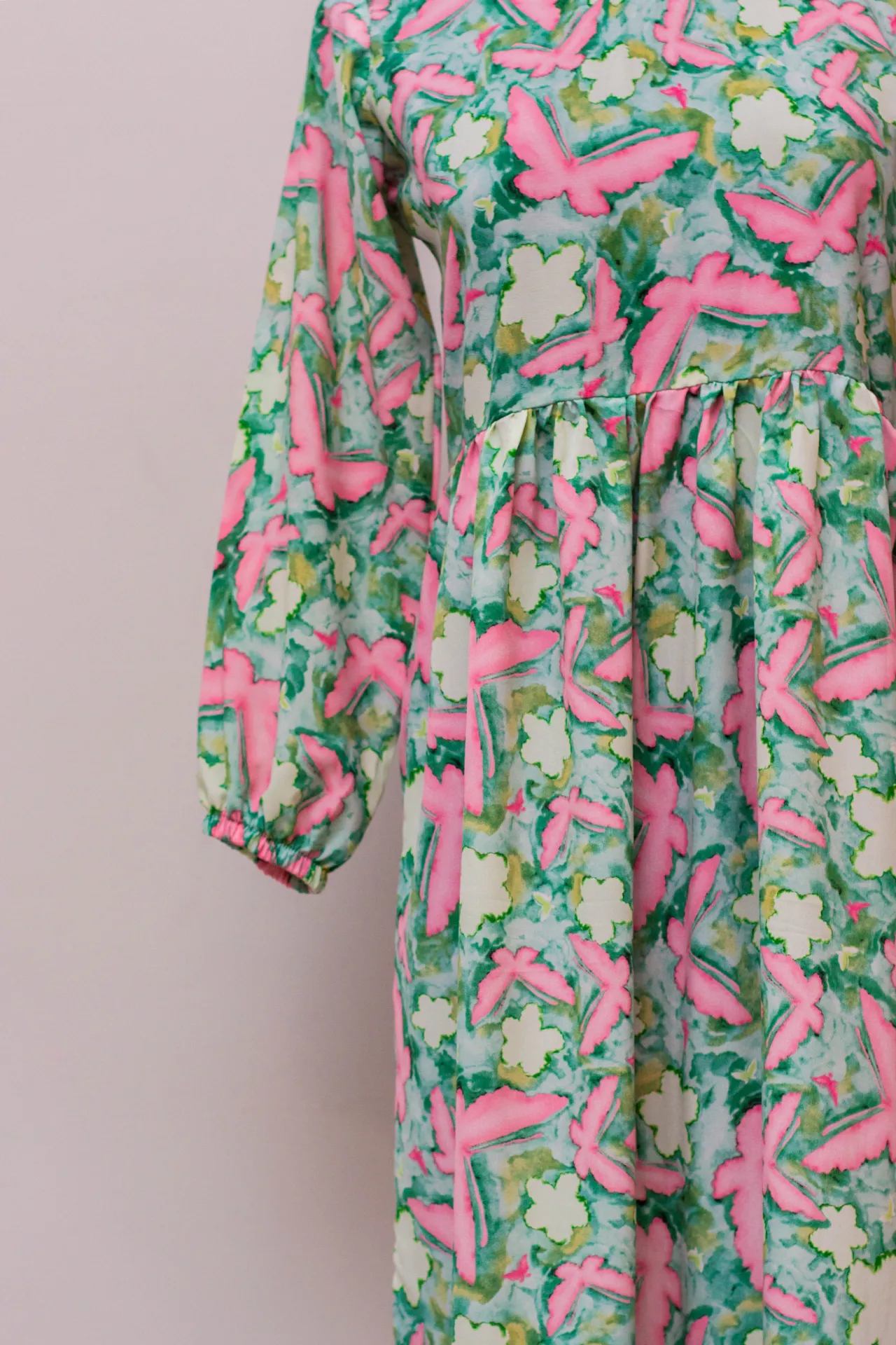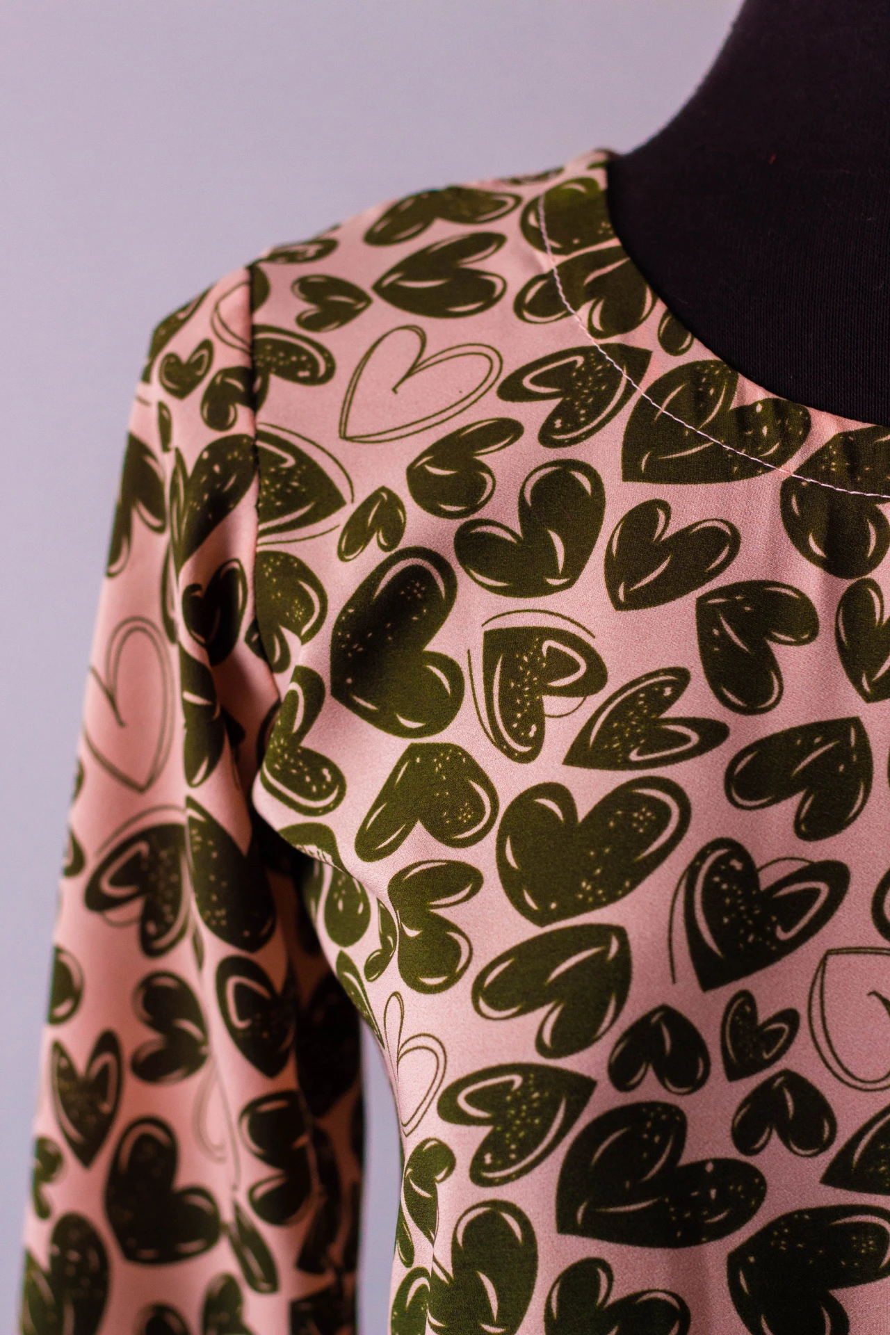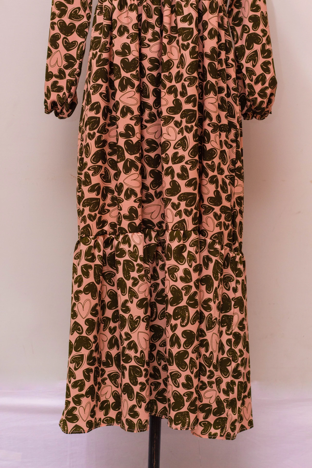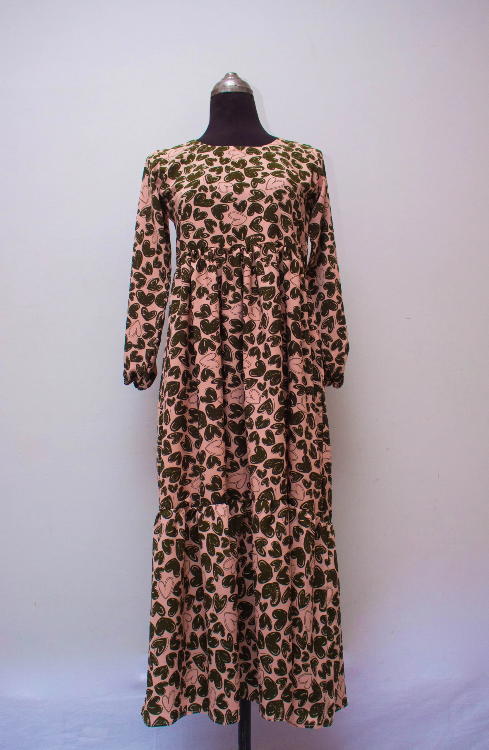 Make a lasting impression with Dusky Hearts – a sophisticated frock in deep, romantic hues. Crafted from fancy grip fabric, this design exudes elegance and charm. Its flowy cut and intricate details make it an ideal choice for evening parties and celebrations.